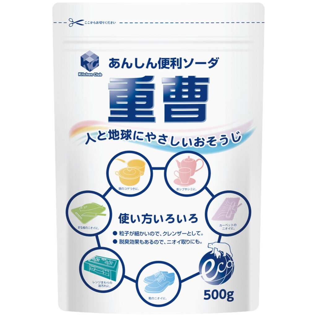 台所用洗剤 キッチンクラブ 重曹 500g 人と地球にやさしいおそうじ。使い方色々。粒子が細かいのでクレンザーとしても。脱臭効果もあり、ニオイ取りにも最適。キッチンまわり、浴室、洗面所などにお使い下さい。 容量500g液性弱アルカリ性成分炭酸水素ナトリウム用途台所まわり・住まいの洗浄 JANコード:4902050590639 Amazon ブランドページを見る 公式オンラインショップで購入 関連商品 第一 食器用洗剤泡スプレー 本体 300ml 食器のあと片付けが簡単な泡スプレータイプ。香りが残りにくい無香性だから、洗ったあとも臭いが気にならない。スポンジもまな板もしっかり除菌できます。 ※スポンジ99.99%除菌。まな板99%除菌。 第一 食器用洗剤泡スプレー 詰替用 720ml 食器のあと片付けが簡単な泡スプレータイプ。香りが残りにくい無香性だから、洗ったあとも臭いが気にならない。スポンジもまな板もしっかり除菌できます。 ※スポンジ99.99%除菌。まな板99%除菌。 キッチンクラブ 濃縮フレッシュ 除菌オレンジ 本体 250ml しつこい油汚れもスッキリ落とす濃縮タイプ。オレンジの香りで除菌もできます。 キッチンクラブ 濃縮フレッシュ 除菌オレンジ 詰替用 700ml しつこい油汚れもスッキリ落とす濃縮タイプ。オレンジの香りで除菌もできます。お得な大容量700mlサイズ。 キッチンクラブ フレッシュ 弱酸性ピンクグレープフルーツ 本体 250ml 手にやさしい弱酸性タイプ。 生臭いニオイも消臭します。クエン酸配合でシンクの水アカ汚れを浮かせて落とします。ピンクグレープフルーツの香りで除菌もできます。 キッチンクラブ フレッシュ 弱酸性ピンクグレープフルーツ 詰替用 700ml 手にやさしい弱酸性タイプ。 生臭いニオイも消臭します。クエン酸配合でシンクの水アカ汚れを浮かせて落とします。ピンクグレープフルーツの香りで除菌もできます。お得な大容量700mlサイズ。 キッチンクラブ 食器洗い機専用洗剤 450g ごはん、卵、油汚れを強力分解。クエン酸配合で水アカを抑える。庫内のニオイもスッキリ消臭。 キッチンクラブ アルコール除菌スプレー 本体 400ml 細菌・ウィルス99.99%除去!まな板・包丁・食卓など、キッチンやリビングの清潔を保ちます。食品添加物指定原料使用だから、食器にかかっても安心。フルーツ酸の効果で、嫌なニオイも解消します。 ※全ての菌・ウイルスを除去できるわけではございません。 キッチンクラブ アルコール除菌スプレー 詰替用 360ml 細菌・ウィルス99.99%除去!まな板・包丁・食卓など、キッチンやリビングの清潔を保ちます。食品添加物指定原料使用だから、食器にかかっても安心。フルーツ酸の効果で、嫌なニオイも解消します。 ※全ての菌・ウイルスを除去できるわけではございません。 キッチンクラブ アルコール除菌スプレー 詰替用 720ml 細菌・ウィルス99.99%除去!まな板・包丁・食卓など、キッチンやリビングの清潔を保ちます。食品添加物指定原料使用だから、食器にかかっても安心。フルーツ酸の効果で、嫌なニオイも解消します。 ※全ての菌・ウイルスを除去できるわけではございません。 キッチンブリーチ 600ml 茶シブ、黒ズミ、バイ菌、悪臭を取り除く、お台所の衛生・除菌・漂白に。つけおき洗いで落とせます。 キッチンブリーチ 1,500ml 茶シブ、黒ズミ、バイ菌、悪臭を取り除く、お台所の衛生・除菌・漂白に。つけおき洗いで落とせます。 キッチンクラブ 重曹 1.0kg 人と地球にやさしいおそうじ。使い方色々。粒子が細かいのでクレンザーとしても。脱臭効果もあり、ニオイ取りにも最適。キッチンまわり、浴室、洗面所などにお使い下さい。 キッチンクラブ セスキ炭酸ソーダ水クリーナー 本体 400ml セスキ炭酸ソーダと水だけで作ったクリーナーです。 べたつく油汚れや、皮脂汚れをサッと落とします。 界面活性剤を使っていません。無香料・無着色。 キッチンクラブ セスキ炭酸ソーダ水クリーナー 詰替用 350ml セスキ炭酸ソーダと水だけで作ったクリーナーです。 べたつく油汚れや、皮脂汚れをサッと落とします。 界面活性剤を使っていません。無香料・無着色。 キッチンクラブ セスキ炭酸ソーダ 500g 人と地球にやさしいおそうじ。アルカリ性が強く、食べこぼしや油汚れ、エリ・そでについた汚れも落とします。水に溶けやすく、スプレー液やつけおき液で使用できます。 キッチンクラブ クエン酸 180g 安心便利な自然派洗浄剤。電気ポットのお手入れや水道の蛇口やシンクの水アカ落としに。酸性なのでアルカリ性の汚れを分解します。 キッチンクラブ 過炭酸ナトリウム 500g 人と地球にやさしいおそうじ。界面活性剤・蛍光増白剤・着色料・香料は不使用。 酸素系なので色柄物の洗濯やしみ抜きにも安心してお使いいただけます。 オレンジボーイ 強力クリーナー 本体 400ml オレンジオイル配合の強力クリーナー。リビング・台所などの油汚れ・タバコのヤニ・手あかに。 オレンジボーイ 強力クリーナー 付替 400ml オレンジオイル配合の強力クリーナー。
